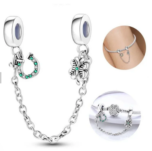 Cadena de Seguridad Trebol y Herradura Diamantada
