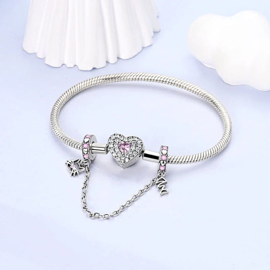 Cadena de Seguridad Corazones con Diamantes Arcoiris