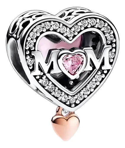 Charm Corazon Plateado Brillante "Mom"